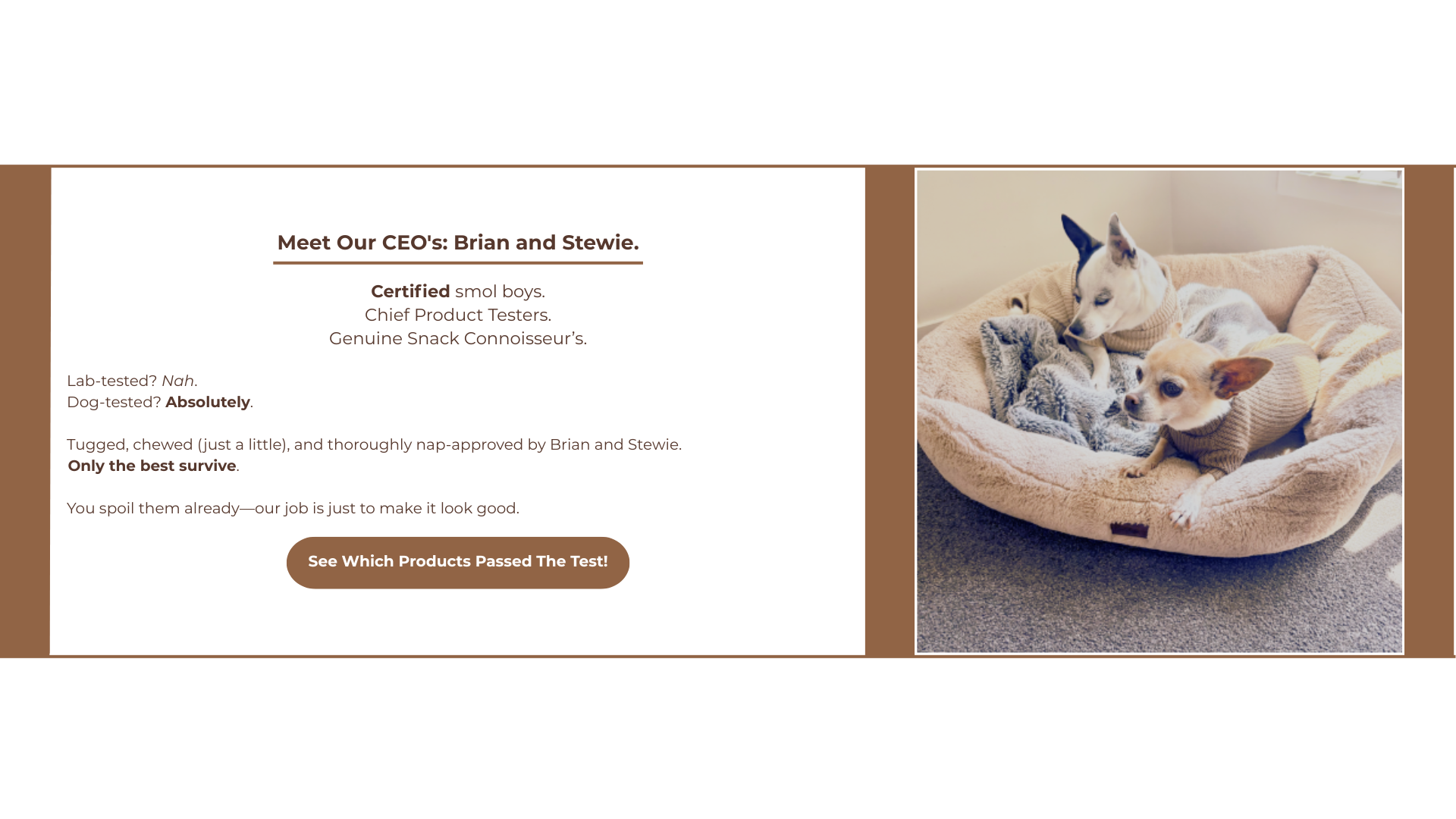 We were tired of flimsy, boring basics that treated dogs like afterthoughts. Our pups are family, style icons, and little souls with big personalities — so why settle for less?